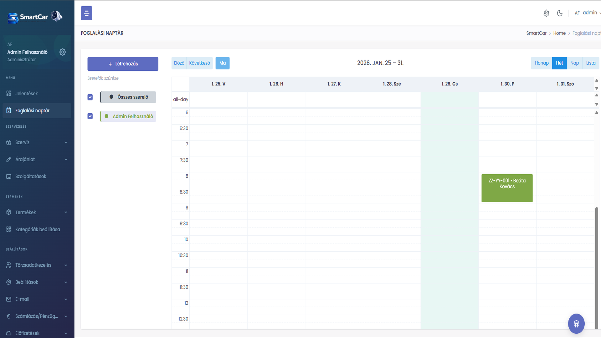 Intelligens Foglalási Naptár és Erőforrás-kezelő