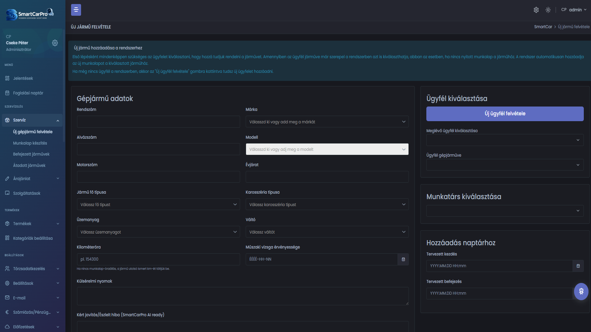 Szervizkezelő rendszer autószerelőknek AI támogatással